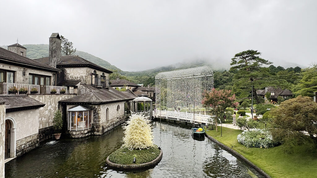どこか異国を訪れたかのような、民家風の建物が建ち並ぶ箱根ガラスの森美術館。ヴェネツィアン・グラス専門の美術館という特徴が意識されてか、庭園に設けられた池を中心とした、親水の場が計画されていたのが印象的でした。