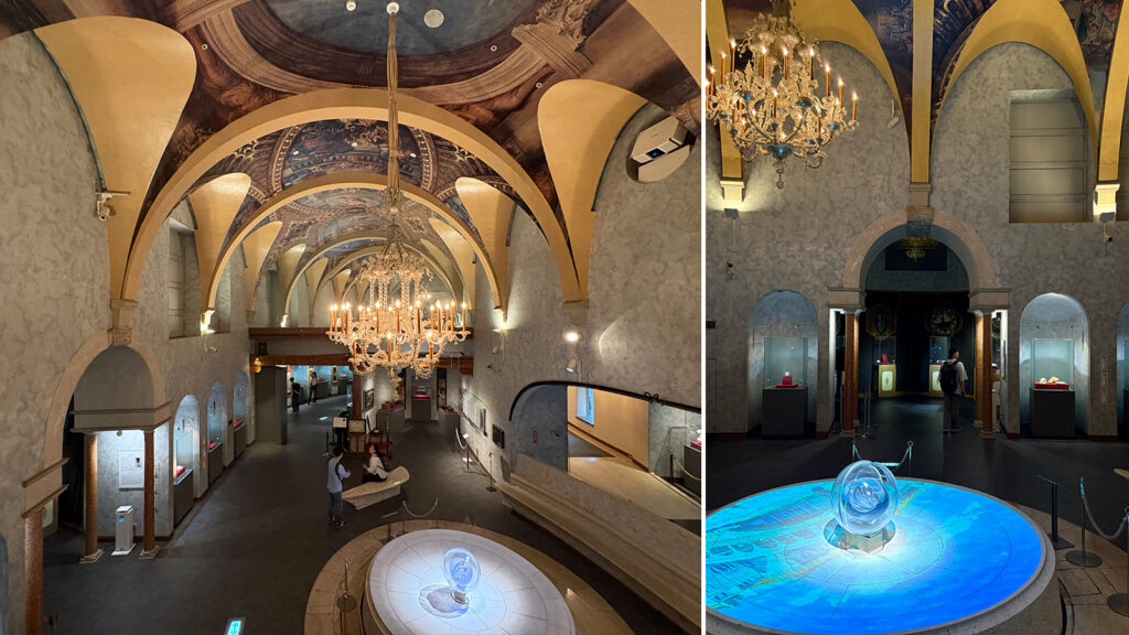 一見テーマパークのようで、この種の施設の専門業者によるものかと思いきや、実際に設計を手がけたのは早稲田大学で教鞭もとられていた建築家、池原義郎さん。館内には池原さんとリヴィオ・セグーゾ氏の共作によるガラス作品も展示されており、建築家の仕事としてこのような形もあるのだと考えさせられた美術館でした。
