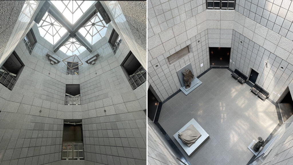 メタボリズム・グループ*3の代表的な建築家として知られる黒川さんですが、メタボリズム建築の代表である中銀カプセルタワービルは1972年の竣工で、この美術館より10年前。この美術館からはメタボリズムの要素はあまり感じられず、どちらかというと6年後に竣工する名古屋市美術館に類似した部分が多々みられることからも、移行期の作品といえるのかもしれません。