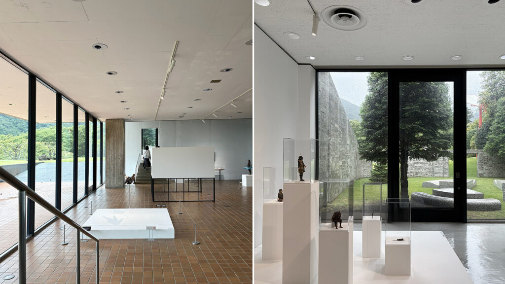およそ70,000㎡という広大な屋外展示場に、数多くの彫刻作品が立ち並ぶ箱根・彫刻の森美術館。木々や芝生に囲まれた緑の風景に小さな建物が点在していて、これらひとつひとつもまた特色ある展示室になっています。
