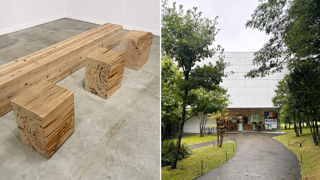 開館から50年以上経っていながら、手塚建築研究所の設計による《ネットの森》(2009年竣工)やトラフ建築設計事務所による《丸太広場キトキ》(2020年完成)など、近年でも建築家による作品が続々と増えている様子。一般的な美術館は土地が限られていることが多いので、建築家による常設の作品が増えていくのはこの美術館ならではともいえます。