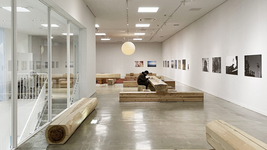 カフェの2階に計画されたトラフ建築設計事務所による《丸太広場 キトキ》(完成:2020年)