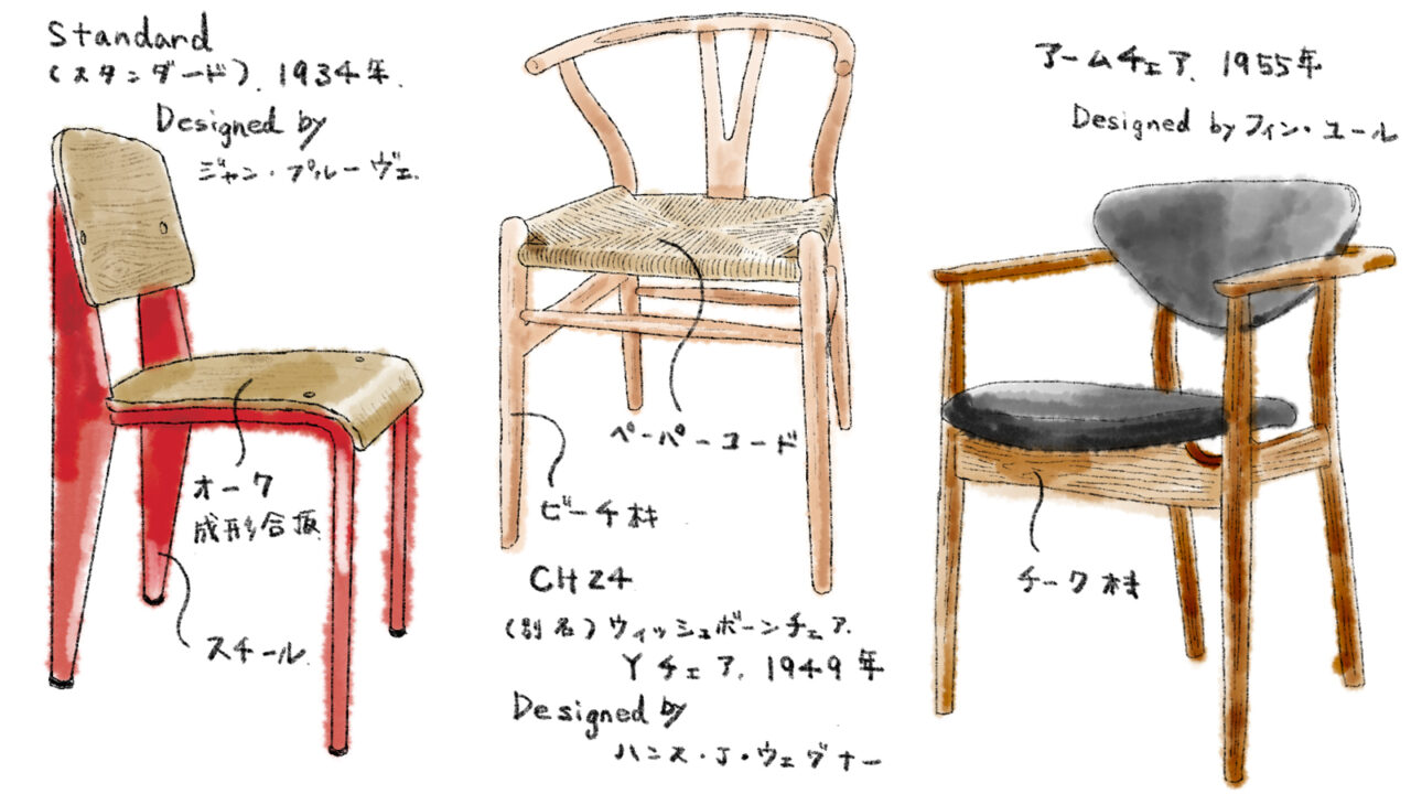 ちなみに《CH24》はウェグナー氏が量産化を狙ってデザインしたことで知られていますが*2、主材のビーチ材は彼の拠点であったデンマークでも豊富に採れる木材。この椅子の特徴である曲げ木が、使用する木材の靱性と加工性を最大限に活かした造形だと気がついたとき、まさに生まれるべくして生まれたプロダクトなのだと深く納得しました。